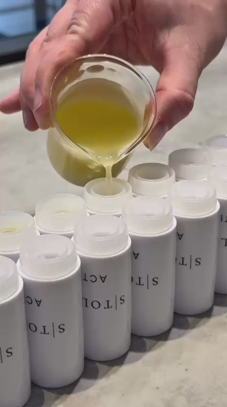 En kombination av naturliga vaxer och oljor utgör grunden för S|TOLOGYs solida parfymer, som sedan blandas med högkvalitativa parfymoljor för att skapa var och en av våra dofter. Våra fasta parfymer har ett hudvänlig innehåll och en subtil men långvarig doft. Denna kvalitet säkerställer en skonsam produkt, vilket gör användningen av S|TOLOGY solid parfym idealisk även för de med känsliga näsor.